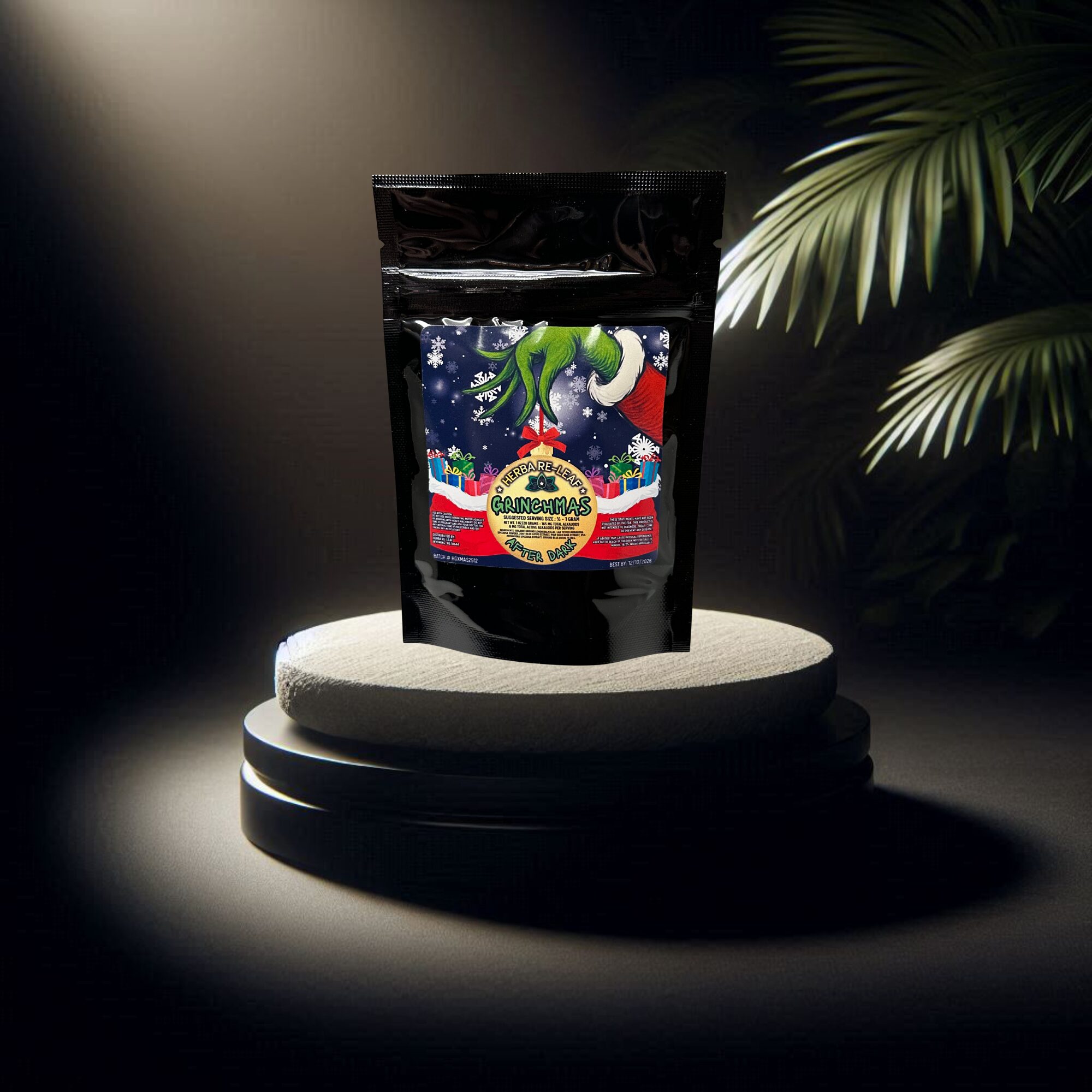Grinchmas makes a major return after a 3 year hiatus! 2025’s version boasts a blend of Organic ground Lemon Balm leaf, lab tested mitragyna speciosa powder, 200:1 Blue Lotus extract, poly gold kava extract, 25% mitragynia speciosa extract (25% Mitragynine, 47% total active alkaloids), ground blue lotus petals – and is just what you need to melt the holiday season BAH HUMBUGS away.